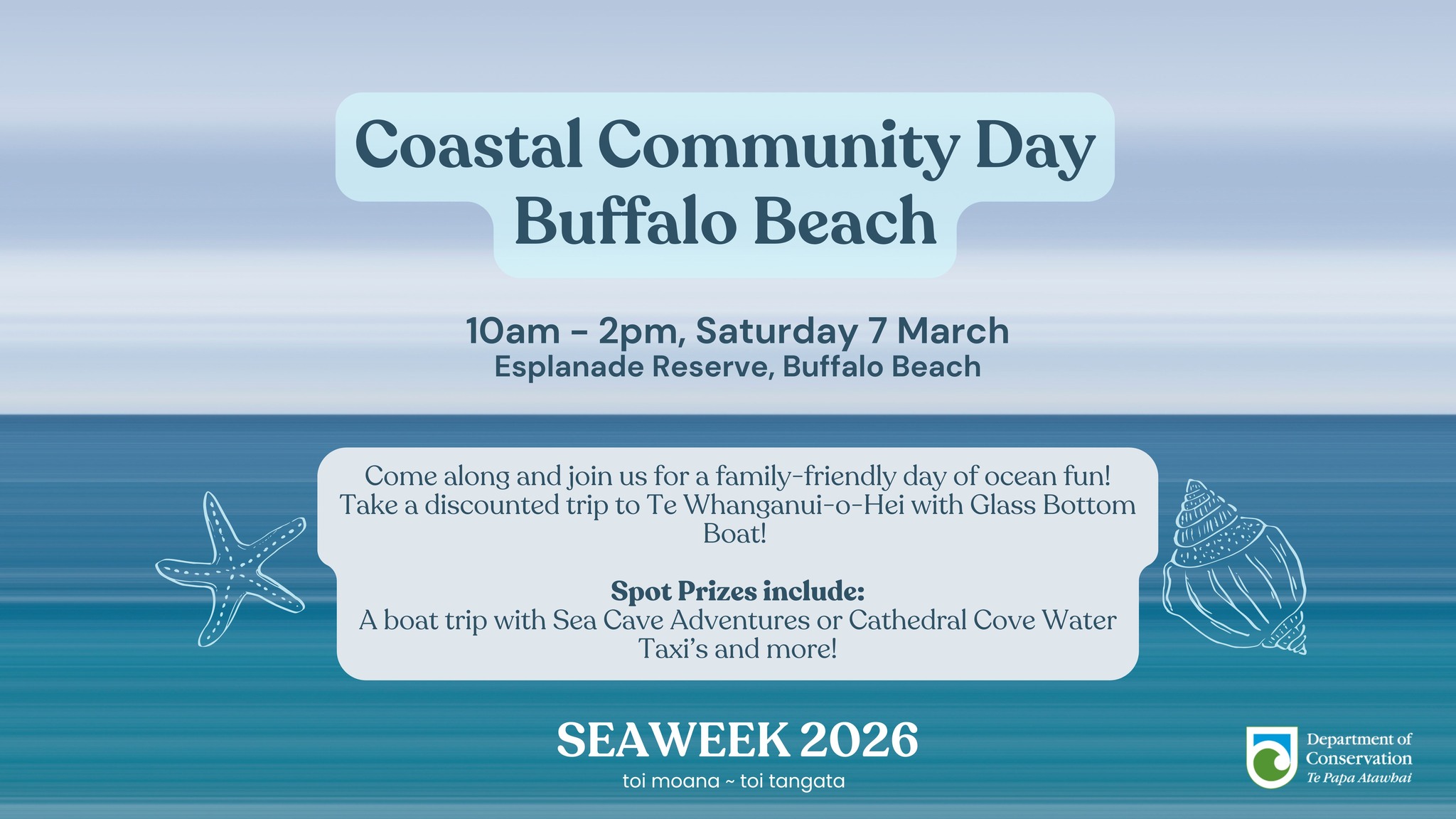 Meet local experts, explore hands on activities, and learn how we can care for our moana together. Getting involved puts you in the draw to win incredible prizes from Sea Cave Adventures and Cathedral Cove Water Taxi’s! 💙🌿